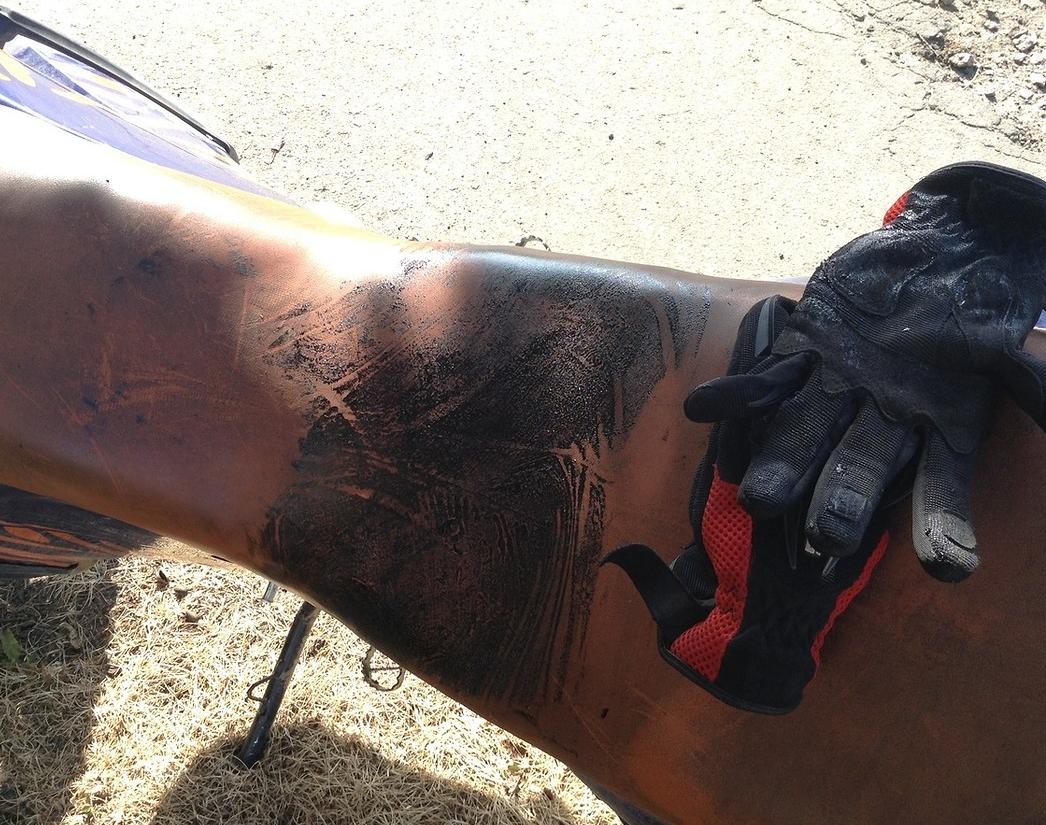 Штаны в битуме, сапоги в битуме, ремень в битуме, перчатки в битуме, джерси в битуме, сидушка в битуме, рычаг погнул слегка