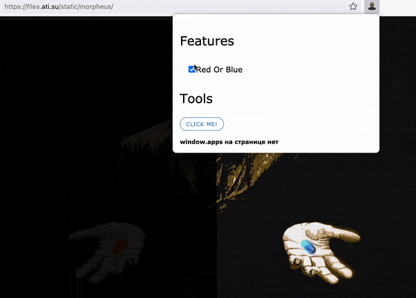 Отсюда появилась идея: сделать React-компонент, который будет рендерить один из двух вложенных компонентов на выбор, а управлять им будем из браузерного расширения.