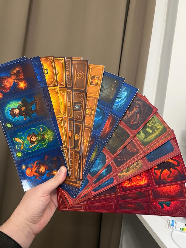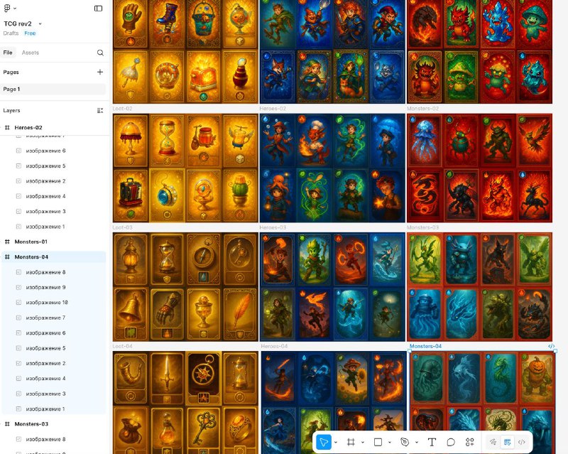 и цветом закодировали карточки (враги красные, лут золотой, герои синие)